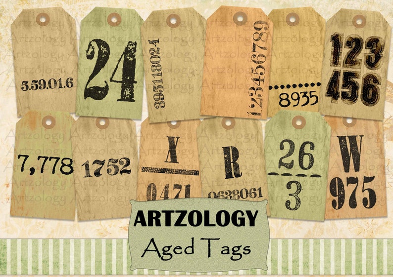 Aged Number Tags, Printable Vintage Style, Digital Collage Sheet, No 341