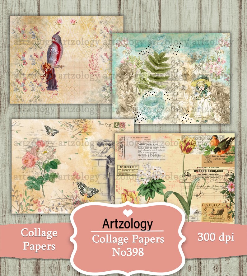 Collage Sheets, Tear Sheets, Junk Journal Ephemera, No. 398