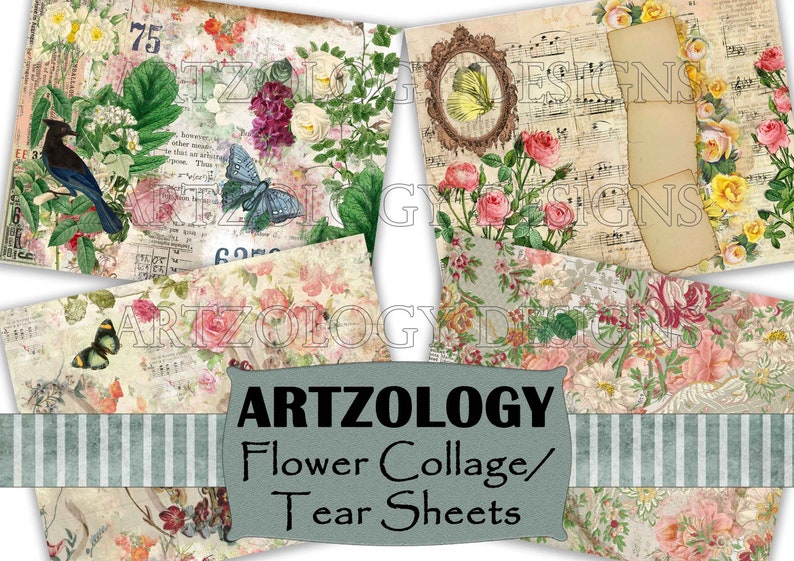 Floral Tear Sheet, Junk Journal Ephemera, No. 340
